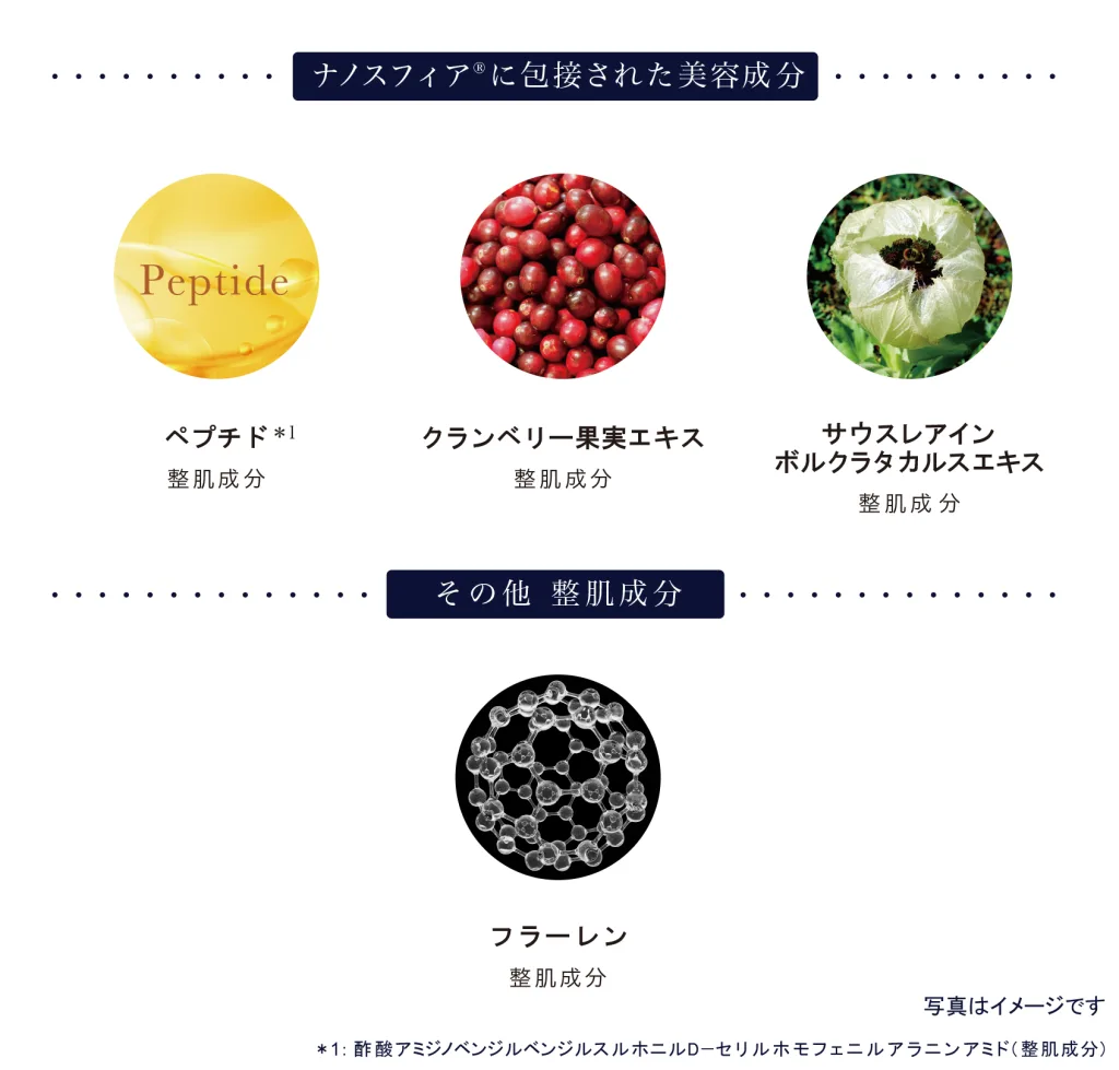 ナノスフィア®は皮膜がビタミンC/Eで構成されたナノカプセルです。